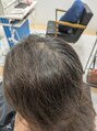 赤味を抑えたくすみのあるベージュ系カラー。根元から透明感のある明るさと白髪も同時にカバーしています。白髪比率40%