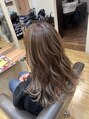 【気に入った頂いたスタイルは、ブックマークをしてご提示下さい】白髪が多そうなところを狙ってハイライトを入れつつ縛った時にチラッと見えたりするおしゃれなハイライト。ベージュ系の色味にすることで肌馴染みもいいし白髪もボケやすいです。