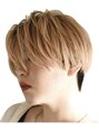 前髪からサイドにつなげてバックをナチュラルに刈り上げたショート。アイロンでトップの根元を立たせてCカールで巻いた束感ショート。