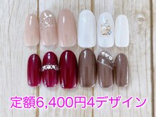 ☆一番人気の定額6,400円コースはカラーにデザイン1本追加の大人っぽシンプルコース◎その他にもデザイン2本追加のキラキラ6800円コース◎…続きを見る