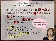 疲れが取れない/肩こりがつらい/冷えやむくみが気になる女性に人気のサロン。