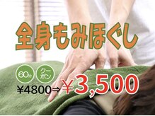 日々頑張ってる身体を最高の技術で癒します♪全身もみほぐし60分3800円と値段もお手頃だもから通いやすい!豊富なメニューで疲れに合わせられる…続きを見る