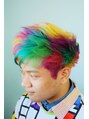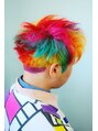 ケンジくんです。今回初めての派手髪です。ブリーチはすでにしてあったので、そのままいろんな色をランダムにいれてきました。結構奇抜でいいかんじになりました。