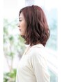 重めのミディアムも、段の入れ方でまとまりやすく、小顔小頭に見えます。前髪は分けても流しても、どちらも似合うスタイルです。小顔に見せる前髪にされたい方、是非ご相談下さいませ♪