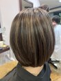 表面を中心にブリーチでハイライトいれて楽しむカラーです。白髪が気になるけど白髪染めはまだしたくないあまり暗くはしたくないという方にもおすすめ!