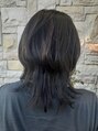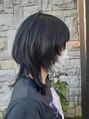 メリハリのある個性的なウルフカット。顔まわりと表面をガッツリ切り込んでいます。ダークトーンのネイビーブラックカラーでクールな印象に☆周りと差をつけられる個性的なヘアスタイルです!