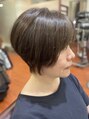 顔立ち骨格に合わせるように施したカットで小顔に見えるバランスに。前髪はシースルーバングで今っぽく。カラーは柔らかく見えるようグレージュ系に