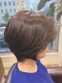 *40-50代オススメショート*フィッシュボーンショート*毛先の動きが軽やかで夏らしい涼しげショートスタイルです*カラーは白髪染めブラウン系6レベル