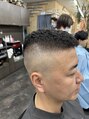 スキンフェード+アイロンパーマ+シェービング+眉カット