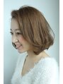 アイロンでニュアンスのカールをつけたボブスタイルです。強すぎないカールで柔らかさを出し、長めの前髪で大人っぽさも演出。ボブなのですがAラインのシルエットになっているのも特徴的です。カラーは11トーンのイエローベージュアッシュカラーで透明感を。