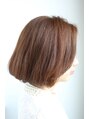 前髪なしの大人可愛いボブです。かきあげバングも可能、乾かすだけでまとまる、小顔に見える、良いことだらけのスタイル◎顔周りに編み込み等のアレンジのしやすさもポイントです。カラーは8レベルのハニーシナモンベージュで柔らかさと軽さを出しています。