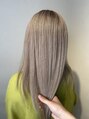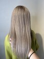 イノアカラーのベージュで白髪ぼかしカラー。前処理にファイバープレックス、後処理にケラスターゼフュジオドーズトリートメント施術で髪は艶サラ。