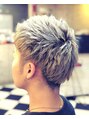 立体的に見せるために根元2センチは黒髪を残しました。ブリーチでしっかり色を抜かないとここまでの色が出ないので、しっかりとブリーチしました!軽めのマッシュカットですが、軽くすることで前髪は下ろしても上げてもどちらでも決まると思います!