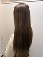 酸性ストレートのお客様です。縮毛矯正と似ていますが、仕上がりがとても自然なストレートになります。ハイトーンなカラー毛でもかられるストレートです。サラサラ艶々です。