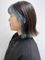 イメチェンインナーカラーターコイズブルーくびれボブワンカール