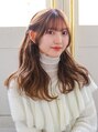 顔周りレイヤー ウェーブヘア マロンブラウン