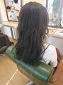 パーマはかかっていません(*^^*)仕上げに26ミリのコテで巻きました☆ベースはワンレンロングで、顔回りに少しレイヤーが入っています☆