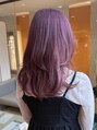 柔らかく透け感のあるラベンダーピンクカラーで、肌を明るく見せつつ大人可愛い雰囲気に。顔まわりにレイヤーを入れることで動きと軽さが出て、春らしい軽やかな印象に。おしゃれ感もありつつ女性らしさを引き立てるおすすめスタイルです。