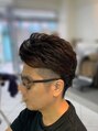 直毛でなかなか毛流れが出来ない髪質だったので、後ろへ流れるようにパーマをかけました!周りは刈り上げているため、トップに長さを残してもスッキリとみえます!スーツスタイルやバシッと決めたい方にオススメです。