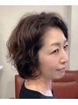 赤みを抑えたくすみ系カラーで、肌なじみが良く、透明感のある仕上がりにしました。顔まわりに柔らかさを出し、骨格補正効果も。