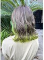 派手な色も挑戦しやすいインナーカラー☆緑から黄緑のグラデーションで個性ある可愛いスタイル☆表面は明るめのアッシュグレー☆