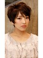 topにカール感のあるショートスタイルです。ツヤのある濃いめのカラーに変えて秋モードにシフトしてみませんか?