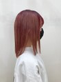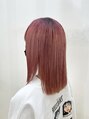 根元は伸びてきた地毛を活かして濃いピンクを重ねることで自然なルーツカラーに。根元が暗めで自然な小顔に◎毛先はブリーチをして色落ちもカワイイベリーピンク♪レイヤーは入れずにストンとしたフォルムに毛先はぷつっと☆
