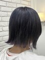 柔らかい印象の前下がりボブ。ボリュームを抑えつつ立体感のあるシルエットに。ブリーチをして紫×青の寒色カラー。ハイトーンが好きな方におすすめスタイル。