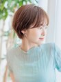 幼く見られやすい丸みのあるショートヘアに、トップにさりげないレイヤーと透明感のあるシアーベージュのヘアカラーをプラスして大人っぽい抜け感のあるスタイルに。 シースルーバングで効果で目が大きくみえます。