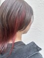表面の長さが伸びていたのでカットしてウルフに◎今回はインナーの根本だけブリーチ◎表面は明るいブラウンにインナーはワインレッド◎個性的で可愛いスタイルに◎