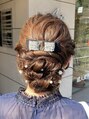 結婚式お呼ばれ。ロングヘアをまとめ髪にお客様の希望でフェラガモのバレッターが映える感じにしてみました。