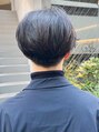 グラデーションベースのフォルムにツーブロックと襟足を9ミリ~12ミリにする事で今っぽい大人のセンターパートパートに変身。 サイドの毛流れと前髪の立ち上がりはレイヤーカットとパーマによるもので、カットとパーマの構成がとても重要になります!