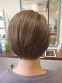 【カット+ドクタートリートメント】ショートボブ。襟足は重くならいよう隙間をつくり軽くトップはふんわり。頭皮の皮脂汚れ、角質、老化の原因になる過酸化皮脂も除去。毛先にはケラチン、コラーゲン、油分をバランス良く入れることでツヤツヤに。
