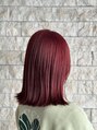 ブリーチ1回の赤カラーです。鮮やかに発色しながら馴染みをよくするためブラウンを調節して作ってます。ロブレングスも人気です【千葉】【髪質改善】