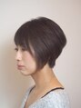 頭の形をキレイに見せてくれる前下がりボブベースのショートスタイルです。前髪をアシンメトリーに切る事でアクセントをつけました。