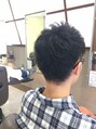 サイドの刈上げを短くすることで、ツーブロック感を強調しました。ショートスタイルをできるだけメリハリ感のあるものに。