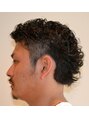 今回は、モデルさんがニブロっぽいパーマがいいと言うので、ベースはサイドを刈り上げてちょっと太めのモヒカンを作り、パーマをしました!もともと、猫ッ毛だったので、かなりボリュームがでて良かったです!
