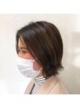 アゴラインの切りっぱなしスタイルでも重く見えないように低めの段を少し入れ、毛量も調節してコンパクトなミニボブに!!フロントは流れやすくなるようカットしてあるので軽くアイロン入れるだけで流れるフロントになります!!