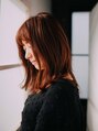 胸上で切りそろえたミデイアムロングスタイル。ほぼノンレイヤーでワンレングスちっくにカットしているので、縦長なストレートラインでスッキリとしたクールな印象に。前髪は透け感がでるシースルーバングで軽さがでるようにしています。