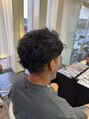 ニュアンスパーマ(ピンパーマ)で直毛に少し動きをつけて、スタイリングしやすくしてます。ワックス、グリースを揉み込むだけで完成。朝時間がない方、直毛にすぎてスタイリング剤つけてもすぐ崩れる方におすすめです。【フェザーパーマ/波巻きパーマ】