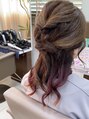 大人女子のおしゃれインナー襟足のみインナーカラーで下ろしたら隠れて縛ったり、ハーフアップにすると見えてくるインナーカラー♪サイドにはインナーは入れておりません全体ブリーチで派手にはしたくないけどオシャレを楽しみたい方には是非!