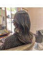 落ち着いたくすみブラウンに柔らかいウェーブを重ねて、品のあるフェミニンスタイルに。動くたびに軽やかさが出ます。顔まわりにしっかりレイヤーを入れて小顔効果を。大人っぽくも可愛い雰囲気に。肌馴染みがよく、色落ちも自然です。