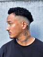 ストリートに映えるハードパーマスタイル。一周スキンフェード。ツヤ系のスタイリング剤で後ろにかき上げるだけでキマります。