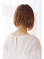小顔を作る前下がりのイレギュラーなボブカットのフェイスラインで似合わせ、ゆるやかに変化するグラデーションカラーでナチュラルな甘さを演出します。