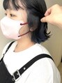 青のイヤリングカラー/外ハネボブ
