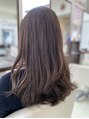 トーンダウンでアッシュカラーしました。ブラウン系のお色は入って無いので、透明感のある仕上がり♪ カットはロングレイヤー。お顔周りが軽くなり、抜け感を作れます!