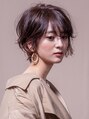 毛先の自然なハネ感とカール感はやわらかいニュアンスパーマ。ふんわりとした動きとウェットな質感が女性らしいキュートな印象に。目元ギリギリのバングが大人な雰囲気も持ち合わせます。