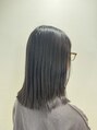 段が入っていないワンレンスタイルです。肩につく長さなので自然な外ハネになります。伸ばし途中でも、定期的にメンテナンスをしてあげることで、より収まりが良くなります。好みに合わせて毛先の質感を調整します。