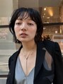 ラフに動く質感と濡れ感バングがポイントのウルフボブ。大きくパーマをかけてくせ毛風に。抜け感と色気が共存する、大人のこなれモードスタイル。