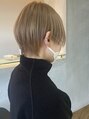 サイドからフォルム、シルエットも綺麗に、プツっとカットで丸みのないかっこいいショート 毛先にラインは残しつつ、軽めな質感。フォギーベージュでヘアスタイルとの中和!